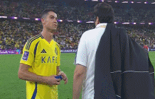当终场哨响后,40岁的C罗独自站在中圈,仍在做出射门姿势。而他的表情十分苦涩无奈,委屈得快哭了。当队友上前安慰时,C罗不断撇嘴并且摊手表达不满,显然他非常失望全队此役的表现。